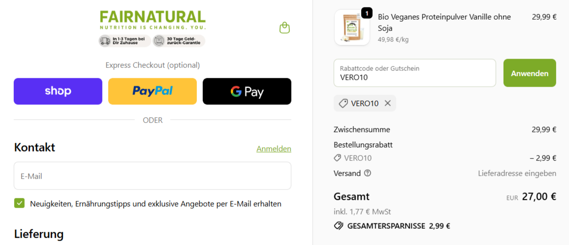2️⃣ 10 % Preisnachlass mit VERO10 sichern